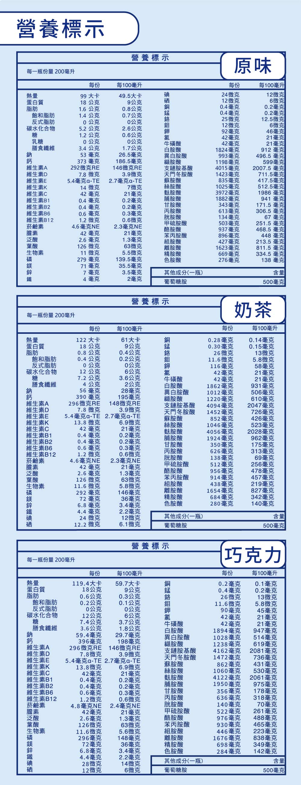世界冠軍特優級蛋白,18克完整蛋白質,4015毫克BCAA支鏈胺基酸,營養約等於5.2瓶鮮奶、22瓶滴雞精,幫助肌肉生長,增強體力